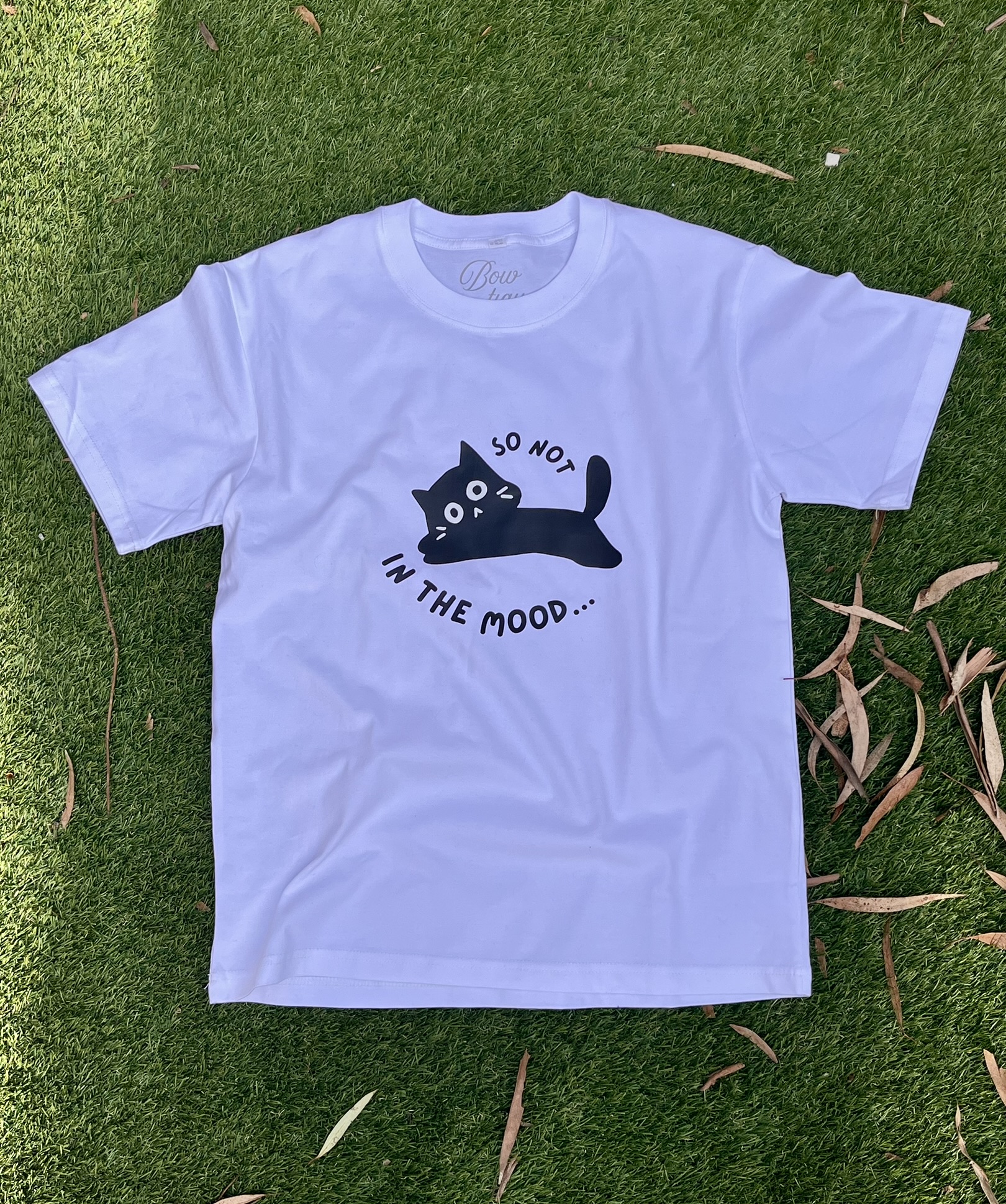 This tee shows a grumpy black cat that says exactly what you’re thinking: “So Not in the Mood.” Made with 100% cotton and durable dtf prints, ideal for mood-matching outfits.